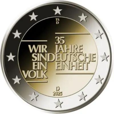 Popis: Na vzore je vyobrazený ohyb rieky Sáry známy ako Saarschleife, so zachytením kľúčových prvkov motívu riečneho meandra charakteristického pre tento kopcovitý kraj. Hlúčiky stromov pozdĺž rieky symbolizujú zalesnenú krajinu v okolí malebného meandra Saarschleife. Pohľad z vtáčej perspektívy vzbudzuje dojem, že tento jedinečný vodný tok pretkáva okolité kopce tiahnuce sa do diaľky. Nápis „Saarland“ je umiestnený v popredí krajinného motívu, no v spodnej časti mince, vďaka čomu nenarúša pokojnú scenériu plnú svetla. V ľavej hornej časti vnútorného kruhu mince sa nachádza značka frankfurtského autora Carstena Wolffa a vpravo je písmeno „X“, namiesto ktorého sa vyrazí značka niektorej z mincovní („A“, „D“, „F“, „G“ alebo „J“). V spodnej polovici mince je nápis „SAARLAND“, písmeno „D“ symbolizujúce kód Nemecka ako vydávajúcej krajiny a rok vydania „2025“.