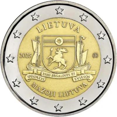 Popis: Na vzore je vyobrazený obrys Litvy. Štátne hranice sú obkolesené štylizovanou ostnatou bariérou, ktorá symbolizuje koncepciu holistickej a celospoločenskej obrany. Obraz ježka zároveň predstavuje otvorenosť a krehkosť slobodných spoločností, ktoré treba pred vonkajšími hrozbami v čo najväčšej miere brániť. Litva je prezentovaná ako ježko, ktorý je vždy v strehu, pripravený brániť sa. V strede mince sa nachádza nápis „LIETUVA“ (LITVA), rok vydania (2025) a značka litovskej mincovne. Vo vonkajšom prstenci mince je vyobrazených dvanásť hviezd vlajky Európskej únie.